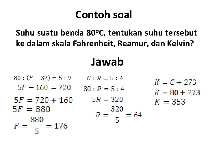Pengertian, satuan, skala, rumus, contoh soal. Pada episode kali ini kak wahyu membahas materi contoh soal perbandingan suhu jika diketahui reamurklo ada pertanyaan tulis komen di bawah . Soal dan pembahasan materi suhu dan pemuaian (smp kelas viii = paket 1). Artikel ini menyajikan kumpulan contoh soal dan pembahasan tentang konversi satuan suhu yang meliputi skala termometer celcius, reamur, . Termometer merupakan alat untuk mengukur suhu benda.